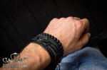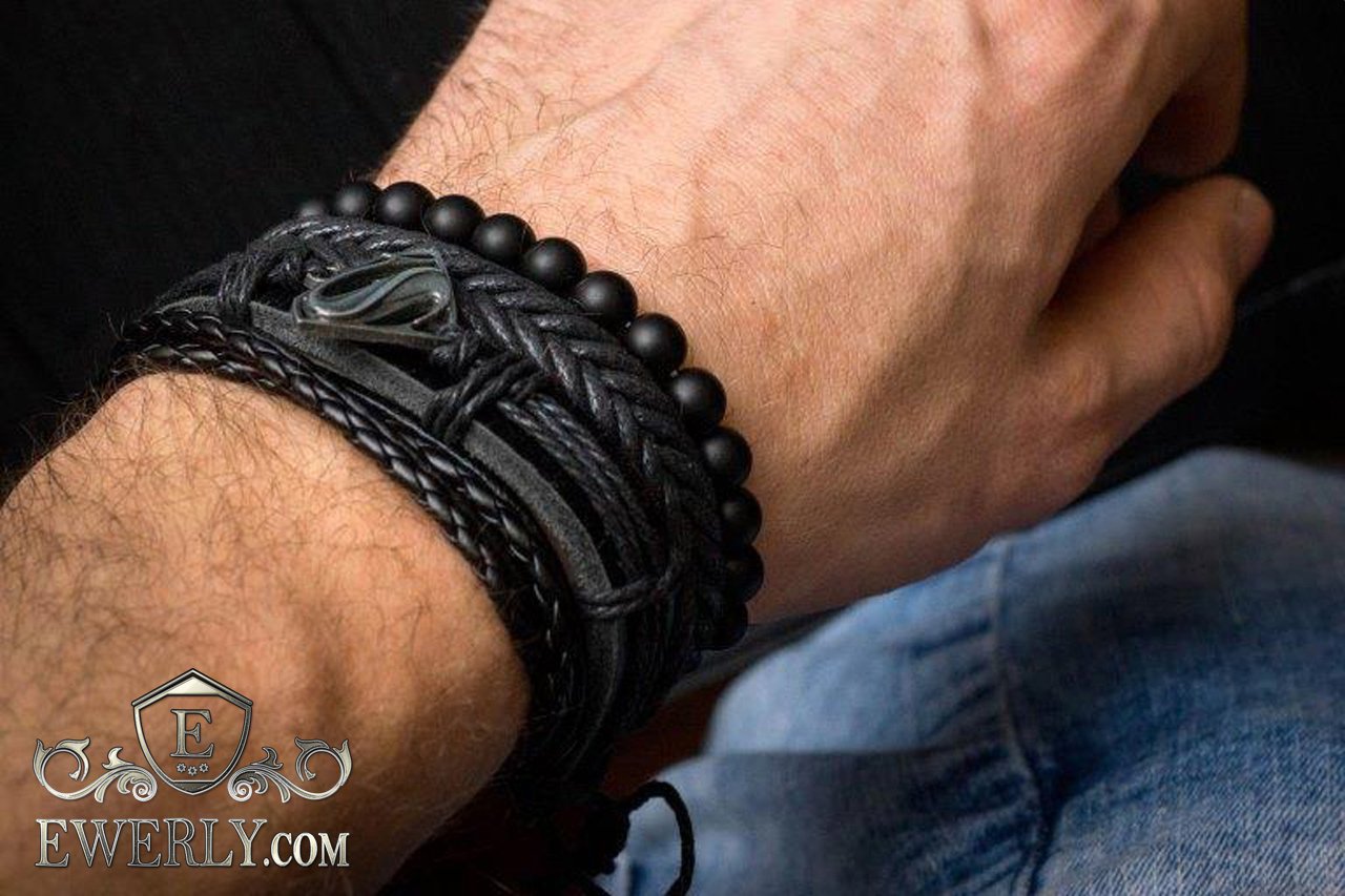 - Три кожаных браслета с регулировкой на шнурке и один браслет из камня вулканической лавы.