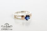 Женское Серебряное кольцо 925 пробы с золотыми вставками 375 пробы с синим камнем.