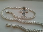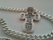 Мужская серебряная цепочка Фантом с большим православным крестом