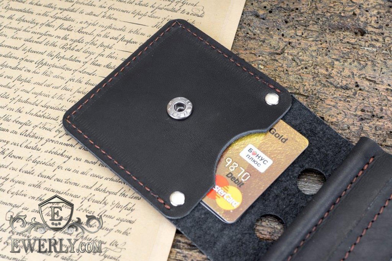 Зажим для денег кожаный чёрный с монетницей 11054AV