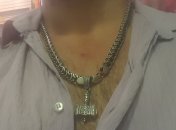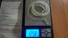 Полновесная цепочка. На фото изображена серебряная цепь Рамзес массой 120 грамм и длиной 60 см с замком "Коробочка и головы змей".