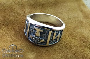 Славянский перстень из золота с символами "Небесный Вепрь" и "Одолень-трава"